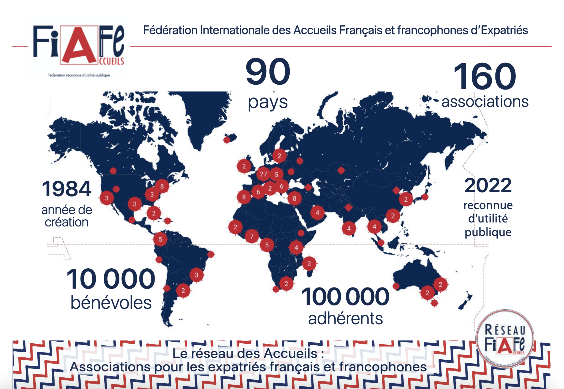 La FIAFE (Fédération internationale des Accueils français & francophones d’expatriés) anime un réseau international de plus 150 Accueils dans 90 pays. Elle les représente auprès des pouvoirs publics, des entreprises et des acteurs de la mobilité internationale.